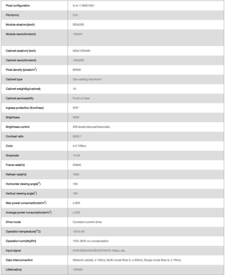 จอแสดงผลภาพ LED ชนิดติดตั้งและใช้งานภายนอกอาคาร (Indoor LED Display) รุ่น High End (HE Series) ความละเอียดภาพ SD PH3.9, P3.9 ให้ภาพคมชัด สวยงาม เนียนเรียบสนิทไร้รอยต่อ สว่างสู้แสงแดดในเวลากลางวันได้ ป้องกันฝุ่นและน้ำเทียบเท่ามือถือ ระดับ IP67 มุมมองภาพกว้างทั้งแล้วตั้งและแนวนอน มองเห็นชัดตั้งแต่ระยะ 3.9 เมตร ถึง 100 เมตร (ขึ้นกับขนาดของจอภาพ) แข็งแรงทนทาน รวมถึงช่วยยืดอายุการใช้งานให้นานขึ้น เหมาะเป็นจอโฆษณา, ป้ายประชาสัมพันธ์, ป้ายจราจร, ป้ายติดอาคาร, หรือจอภาพรูปทรงพิเศษ เพื่อดึงดูดสายตาผู้คนที่ผ่านไปมา ด้วยคุณภาพระดับโลก จากผู้ผลิตที่มียอดส่งออกอเมริกาและยุโรปอันดับ 1